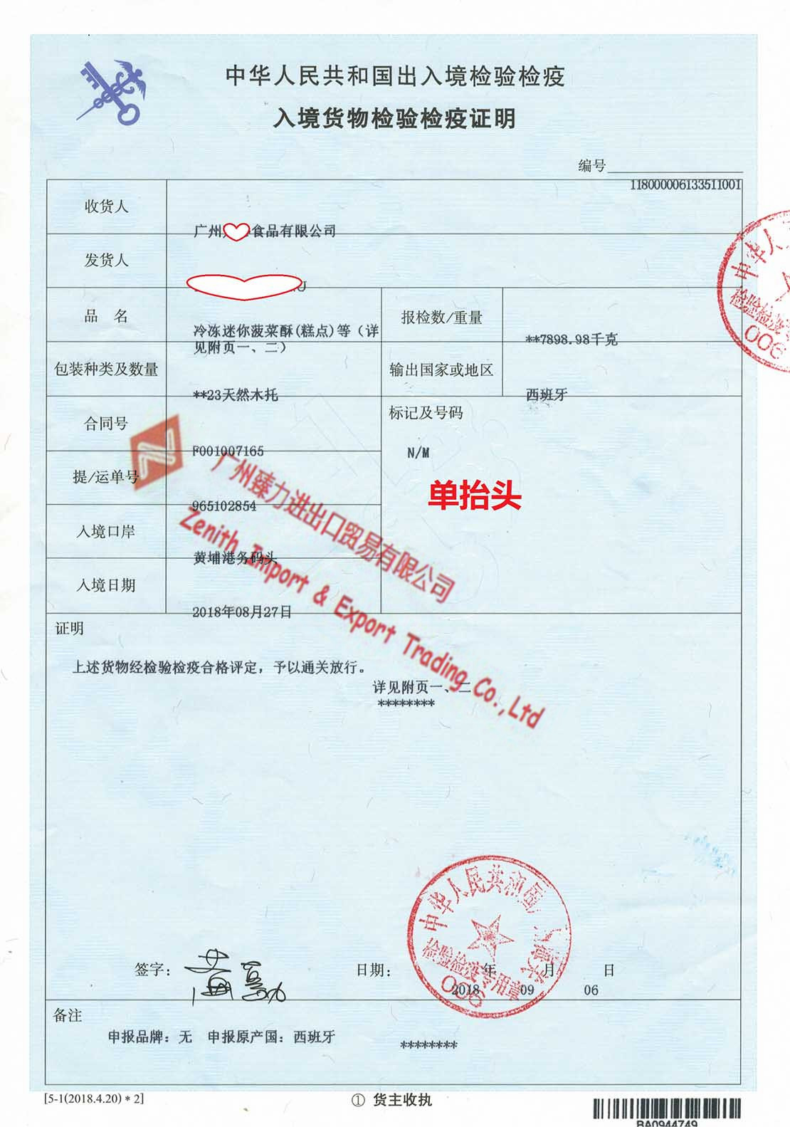 食品进口案例